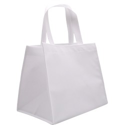 La Bolsa No Tejido Take Away Rectangular está diseñada para transportar de forma segura envases y bandejas de comida alargadas. Su fuelle rectangular y costuras reforzadas aportan una gran resistencia, estabilidad y comodidad para negocios de take away y delivery.